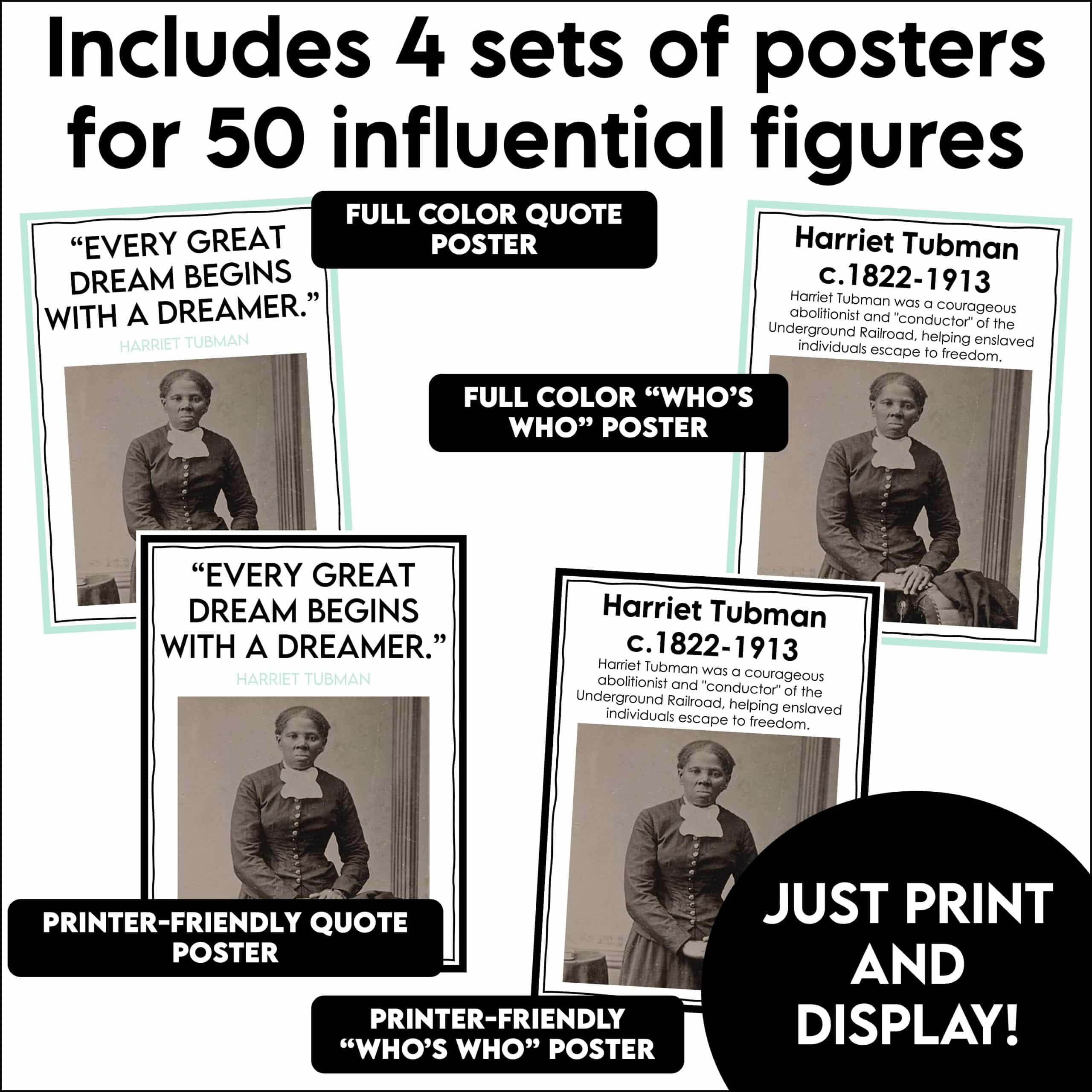- 50 Full-Color “Who’s Who” Biography Posters – includes date of birth/death, illustration, and what they are known or famous for.