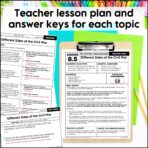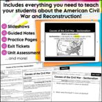 This unit primarily correlates to the current TEKS 5th-grade Social Studies standards (adopted in 2024). It includes EVERYTHING you need to teach about the American Civil War and the Reconstruction period – just print & go!