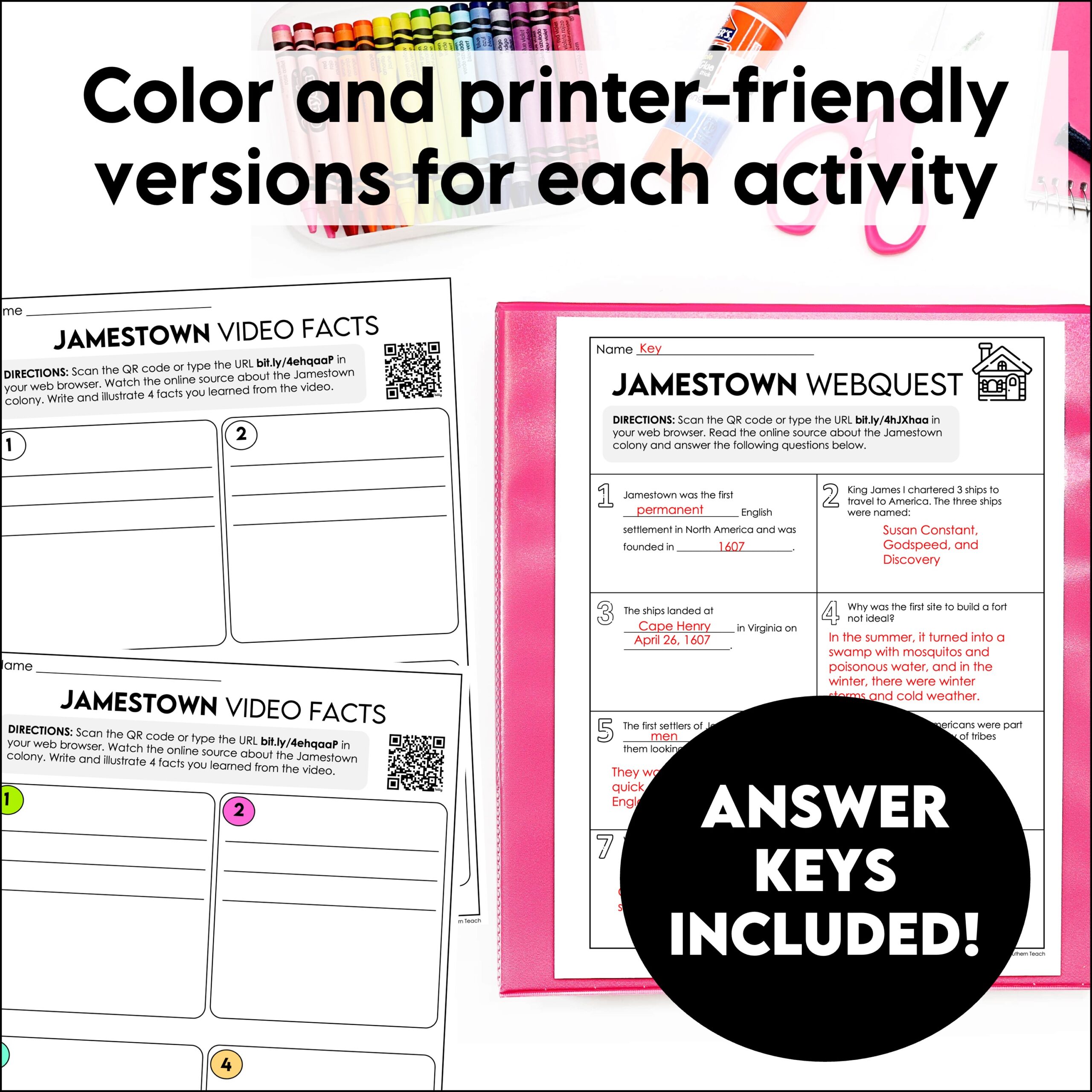 - 2 Jamestown WebQuest activities