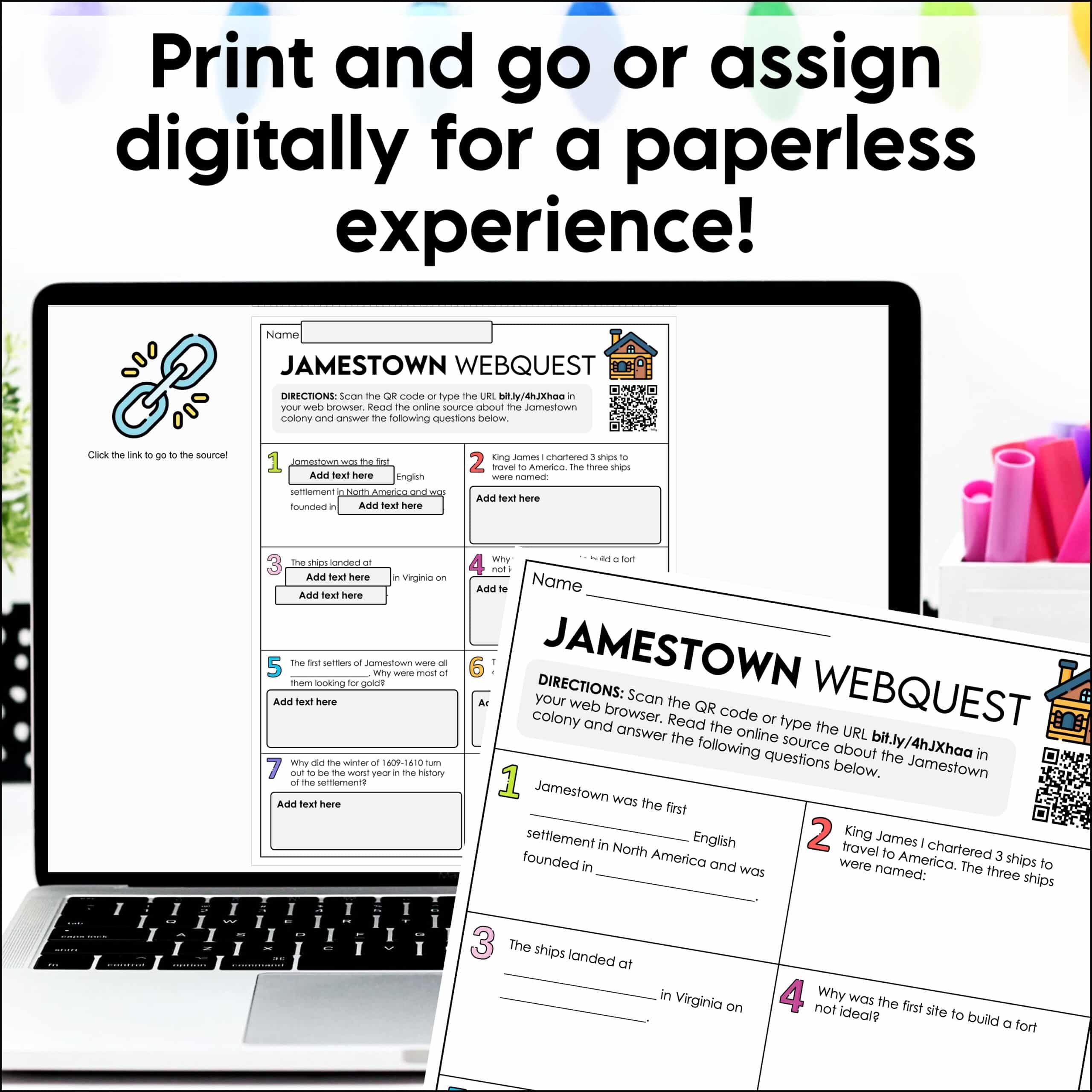 Jamestown WebQuest – Internet Scavenger Hunt Activity