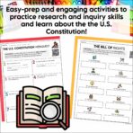 This is a great activity for students to learn how the Constitution of the United States was formed, as well as research information about the 1st 10 Amendments of the Constitution, or Bill of Rights.